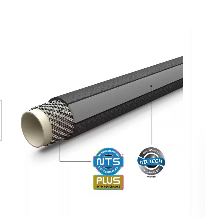 The Gorilla Extremelite is engineered to be the lightest and strongest hose for professional use featuring high resistance to various stresses combined with exceptional lightness. Designed with proprietary FITT Technology inside, double NTS PLUS (No Torsion System) chain mesh reinforcement, our hose offers even greater strength and performance, ensuring constant flow by preventing kinks, tangles, and twists. Thanks to highly advanced materials, the product is extremely compact and easy to use even in the most extreme conditions. HD tech guarantees high resistance to abrasion and puncture. The use of thermoplastic elastomer Santoprene TPV, a registered Trademark of Celanese, combined with the ultra-light technology patented by FITT, gives our hose ultimate handling and flexibility. The result is an ultra-lightweight, compact design with superior abrasion and puncture resistance characteristics. Unlike conventional hoses, our hose stays flexible and dependable in extreme cold down to minus 4°F. Professionals in the construction, farming and institutional industries will find that the Gorilla Extremelite will be the last hose they will ever need.